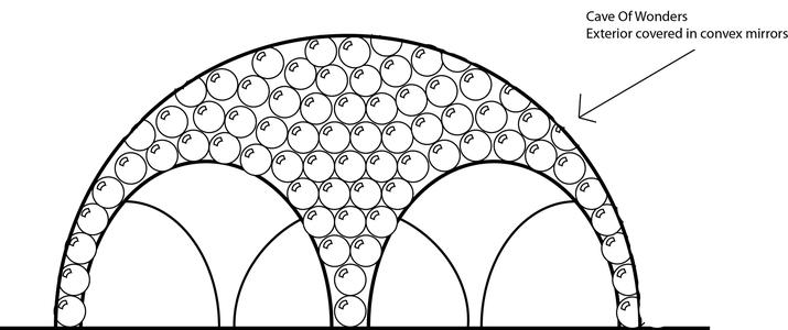 Exterior covered in convex mirrors
